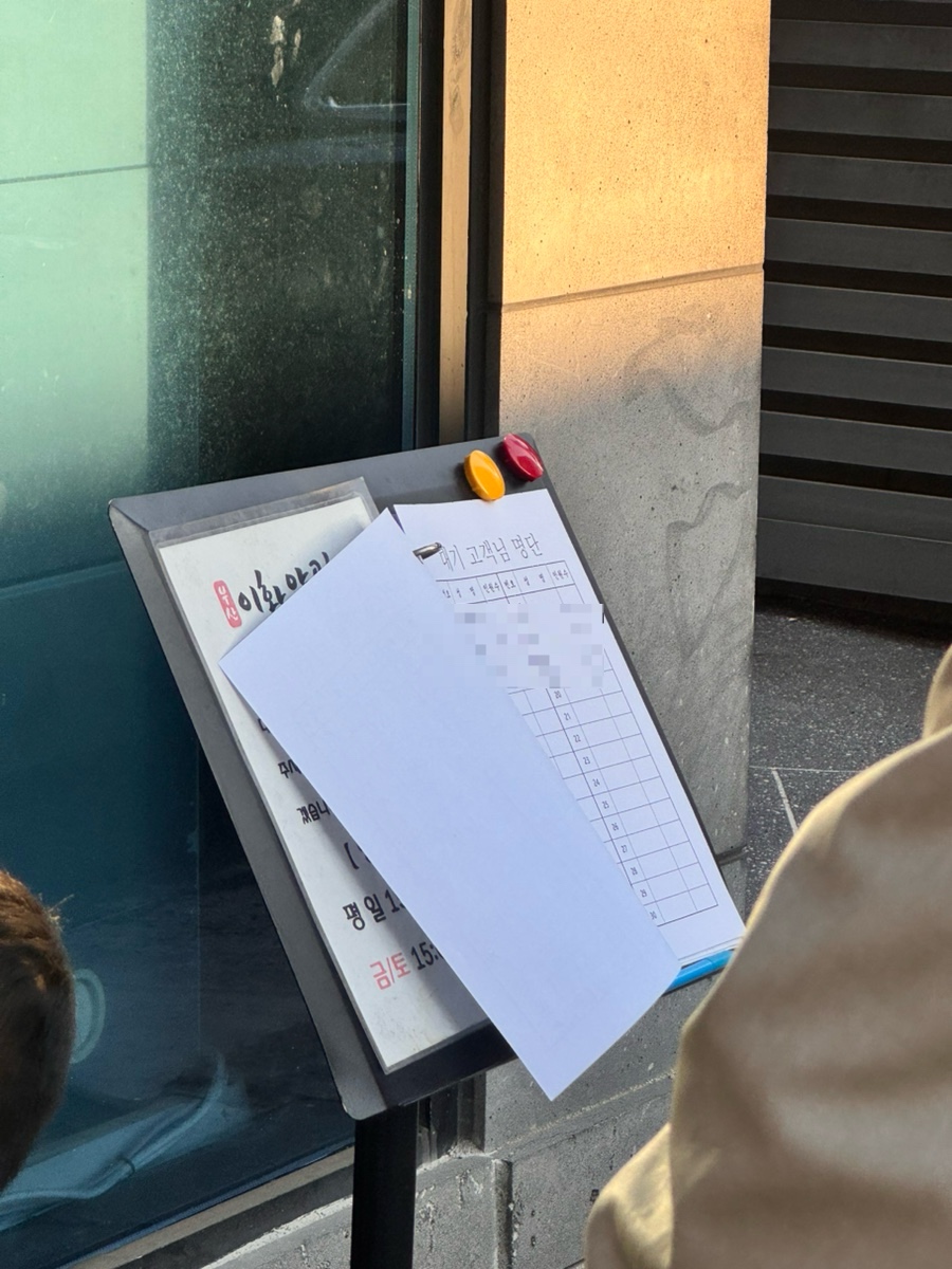 가게 앞에 수기로 웨이팅 등록하시면 됩니다.